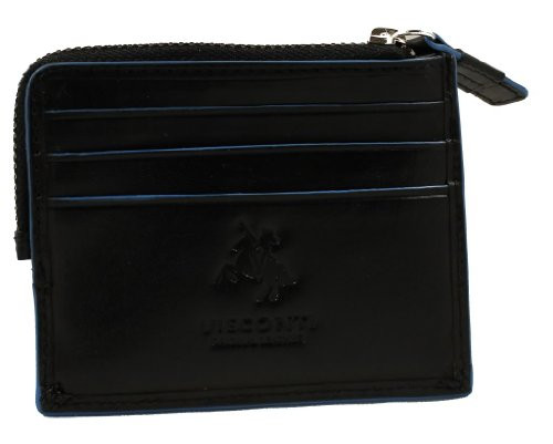- Visconti Alps-34- Mini Black Leather Card Holder + Blue Contrast Edging