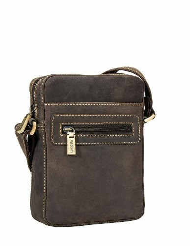 This great compact shoulder bag is made from Visconti's unique oiled leather. The process used to make this leather gives a distressed look, makes the bags very hard wearing and means that they will age beautifully to an extremely soft and smooth finish. The quality of Visconti's design is just as impressive as the quality of the materials they use, making this just the right sized bag for storing everyday valuables and essentials. The front features a small zipped pocket as well as a larger non-zipped easy access pouch behind it. The back has another zipped pocket giving plenty of safe storage options. Inside the bag is similarly simply designed with a zipped pocket for valuables and a mobile phone pouch. The shoulder strap is adjustable and constructed from hardwearing webbing with a thin leather covering in keeping with the look of the bag. Visconti's customary attention to detail is evident throughout the bag with subtle but elegant touches such as the antique effect metal on the zips and buckles and the stitch detailing on the bag and shoulder strap. Like all the Visconti bags we sell, this bag comes in an attractive Visconti dust bag.