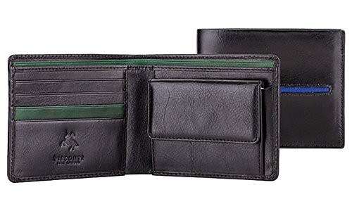 - Visconti AER-29 Aero Genuine Leather Mens Bi-Fold Wallet w/Coin Pouch (Black/...