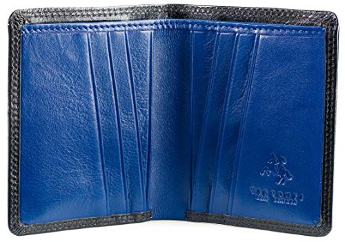 Visconti Diablo DN45 is an attractive quality Mens Leather Card Holder Wallet. Diablo has 6 credit card slots, 1 compartment for notes, and two slip in pockets for receipts. Wallet has a choice of colors: Black with Cobalt Blue , or Black with Green. Dn45 is double stitched and Gift Boxed making it the perfect gift, or treat yourself. A Wallet you will surely enjoy. A purchase you will not regret.