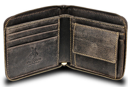 - Visconti Hunter 702 Zip Around Leather Oil Tanned Distressed Wallet