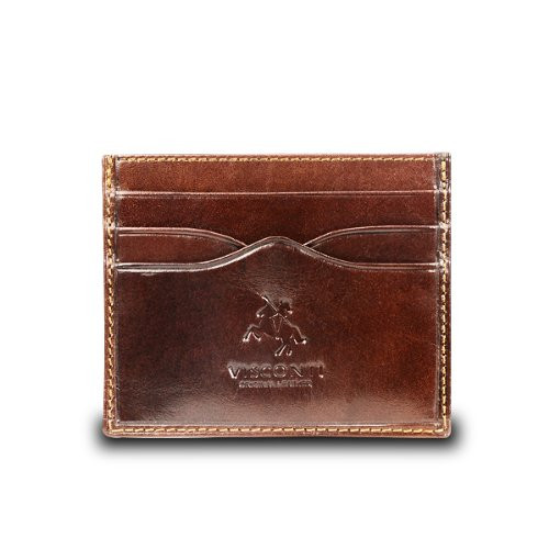 - Visconti Monza1 Pocket Card Holder in Italian Brown Leather [Apparel]