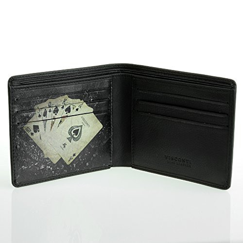 - Visconti Poker 43 Genuine Leather Bifold Wallet with Playing Cards Design (Black)